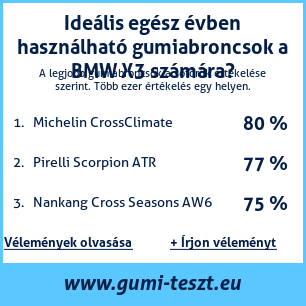 Ha saját autós témájú weboldala van, vagy gumiabroncs-beszállító, elhelyezheti weboldalán az autógumiabroncsok minősítő táblánkat BMW X3: Gumiabroncsteszt BMW X3 [png] ![]()