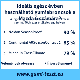 Ha saját autós témájú weboldala van, vagy gumiabroncs-beszállító, elhelyezheti weboldalán az autógumiabroncsok minősítő táblánkat Mazda 6: Gumiabroncsteszt Mazda 6 [png] ![]()