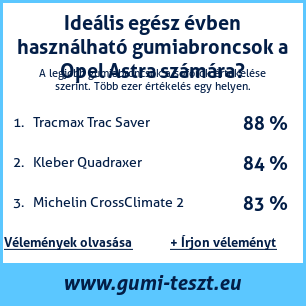 Ha saját autós témájú weboldala van, vagy gumiabroncs-beszállító, elhelyezheti weboldalán az autógumiabroncsok minősítő táblánkat Opel Astra: Gumiabroncsteszt Opel Astra [png] ![]()