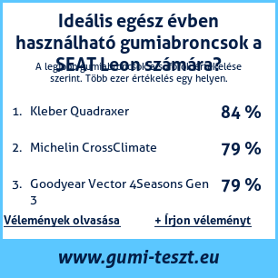 Ha saját autós témájú weboldala van, vagy gumiabroncs-beszállító, elhelyezheti weboldalán az autógumiabroncsok minősítő táblánkat SEAT Leon: Gumiabroncsteszt SEAT Leon [png] ![]()