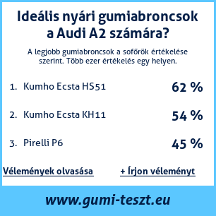 Ha saját autós témájú weboldala van, vagy gumiabroncs-beszállító, elhelyezheti weboldalán az autógumiabroncsok minősítő táblánkat Audi A2: Gumiabroncsteszt Audi A2 [png] ![]()