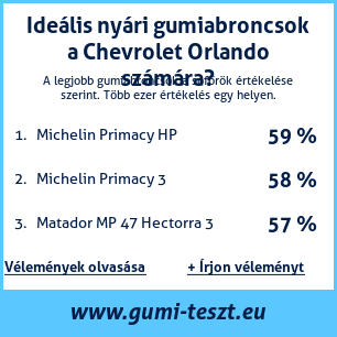 Ha saját autós témájú weboldala van, vagy gumiabroncs-beszállító, elhelyezheti weboldalán az autógumiabroncsok minősítő táblánkat Chevrolet Orlando: Gumiabroncsteszt Chevrolet Orlando [png] ![]()