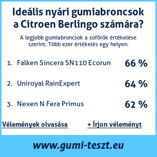 Ha saját autós témájú weboldala van, vagy gumiabroncs-beszállító, elhelyezheti weboldalán az autógumiabroncsok minősítő táblánkat Citroen Berlingo: Gumiabroncsteszt Citroen Berlingo [png] ![]()