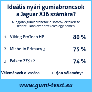 Ha saját autós témájú weboldala van, vagy gumiabroncs-beszállító, elhelyezheti weboldalán az autógumiabroncsok minősítő táblánkat Jaguar XJ6: Gumiabroncsteszt Jaguar XJ6 [png] ![]()