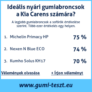 Ha saját autós témájú weboldala van, vagy gumiabroncs-beszállító, elhelyezheti weboldalán az autógumiabroncsok minősítő táblánkat Kia Carens: Gumiabroncsteszt Kia Carens [png] ![]()