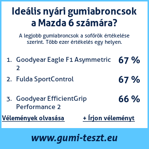 Ha saját autós témájú weboldala van, vagy gumiabroncs-beszállító, elhelyezheti weboldalán az autógumiabroncsok minősítő táblánkat Mazda 6: Gumiabroncsteszt Mazda 6 [png] ![]()