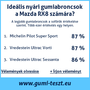 Ha saját autós témájú weboldala van, vagy gumiabroncs-beszállító, elhelyezheti weboldalán az autógumiabroncsok minősítő táblánkat Mazda RX8: Gumiabroncsteszt Mazda RX8 [png] ![]()