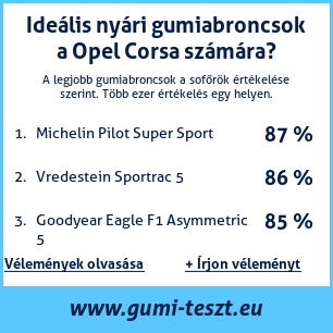 Ha saját autós témájú weboldala van, vagy gumiabroncs-beszállító, elhelyezheti weboldalán az autógumiabroncsok minősítő táblánkat Opel Corsa: Gumiabroncsteszt Opel Corsa [png] ![]()