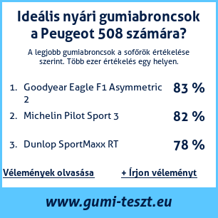 Ha saját autós témájú weboldala van, vagy gumiabroncs-beszállító, elhelyezheti weboldalán az autógumiabroncsok minősítő táblánkat Peugeot 508: Gumiabroncsteszt Peugeot 508 [png] ![]()
