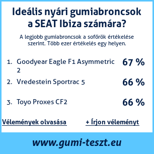 Ha saját autós témájú weboldala van, vagy gumiabroncs-beszállító, elhelyezheti weboldalán az autógumiabroncsok minősítő táblánkat SEAT Ibiza: Gumiabroncsteszt SEAT Ibiza [png] ![]()