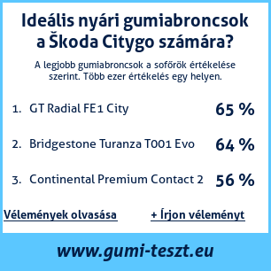 Ha saját autós témájú weboldala van, vagy gumiabroncs-beszállító, elhelyezheti weboldalán az autógumiabroncsok minősítő táblánkat Škoda Citygo: Gumiabroncsteszt Škoda Citygo [png] ![]()