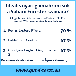 Ha saját autós témájú weboldala van, vagy gumiabroncs-beszállító, elhelyezheti weboldalán az autógumiabroncsok minősítő táblánkat Subaru Forester: Gumiabroncsteszt Subaru Forester [png] ![]()