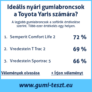 Ha saját autós témájú weboldala van, vagy gumiabroncs-beszállító, elhelyezheti weboldalán az autógumiabroncsok minősítő táblánkat Toyota Yaris: Gumiabroncsteszt Toyota Yaris [png] ![]()