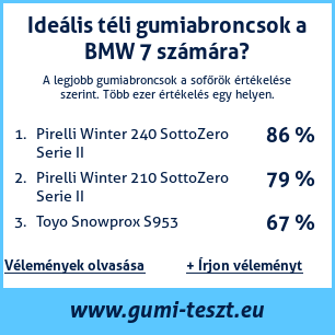 Ha saját autós témájú weboldala van, vagy gumiabroncs-beszállító, elhelyezheti weboldalán az autógumiabroncsok minősítő táblánkat BMW 7: Gumiabroncsteszt BMW 7 [png] ![]()