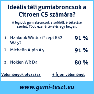 Ha saját autós témájú weboldala van, vagy gumiabroncs-beszállító, elhelyezheti weboldalán az autógumiabroncsok minősítő táblánkat Citroen C5: Gumiabroncsteszt Citroen C5 [png] ![]()