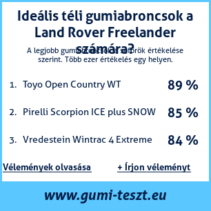 Ha saját autós témájú weboldala van, vagy gumiabroncs-beszállító, elhelyezheti weboldalán az autógumiabroncsok minősítő táblánkat Land Rover Freelander: Gumiabroncsteszt Land Rover Freelander [png] ![]()