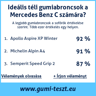 Ha saját autós témájú weboldala van, vagy gumiabroncs-beszállító, elhelyezheti weboldalán az autógumiabroncsok minősítő táblánkat Mercedes Benz C: Gumiabroncsteszt Mercedes Benz C [png] ![]()