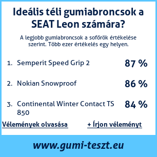 Ha saját autós témájú weboldala van, vagy gumiabroncs-beszállító, elhelyezheti weboldalán az autógumiabroncsok minősítő táblánkat SEAT Leon: Gumiabroncsteszt SEAT Leon [png] ![]()