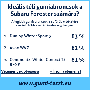 Ha saját autós témájú weboldala van, vagy gumiabroncs-beszállító, elhelyezheti weboldalán az autógumiabroncsok minősítő táblánkat Subaru Forester: Gumiabroncsteszt Subaru Forester [png] ![]()