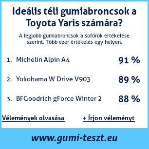 Ha saját autós témájú weboldala van, vagy gumiabroncs-beszállító, elhelyezheti weboldalán az autógumiabroncsok minősítő táblánkat Toyota Yaris: Gumiabroncsteszt Toyota Yaris [png] ![]()